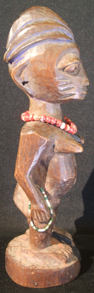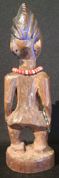 Twins are considered to be powerful spirits, so upon the death of one or both twins, the ibeji, a small wood figure, is carved to represent the deceased child. The ibeji is treated just as if the child were still alive. It is bathed. clothed, fed and generally looked after by the mother to assure that only good fortune is brought to the family. Ibejis are not carved to look like children but instead they appear as either male or female adults. |