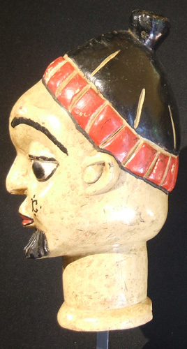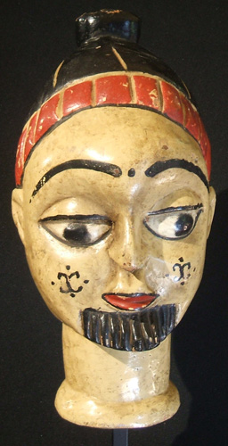 Temne tribe, Jolay Society headpiece used in fishing boat to assure a good catch. This is an early work by artist John Goba. Sierra Leone Wood, paint 12" high (20" including base) #y2330-10 Was $2450 Reduced Price: $1470